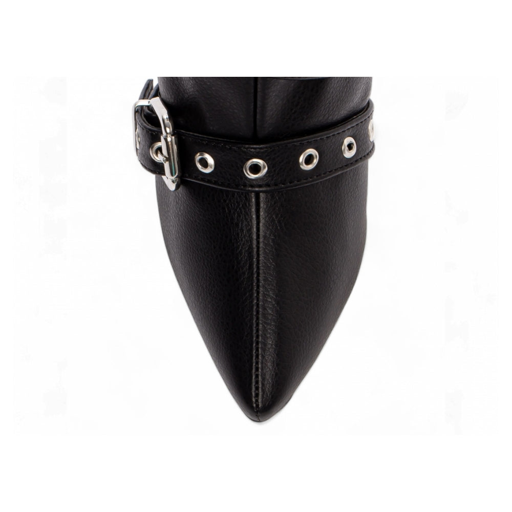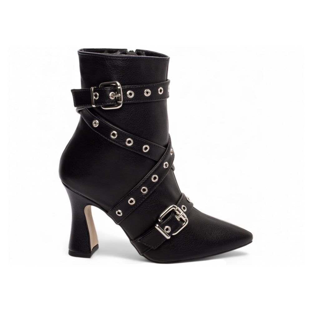 A Bota Preta Bloco com Fivela é a escolha perfeita para quem busca um calçado moderno e sofisticado. Produzida em napa preta de alta qualidade, ela conta com fivelas e ilhós na cor prata, adicionando um toque de estilo e personalidade ao look.